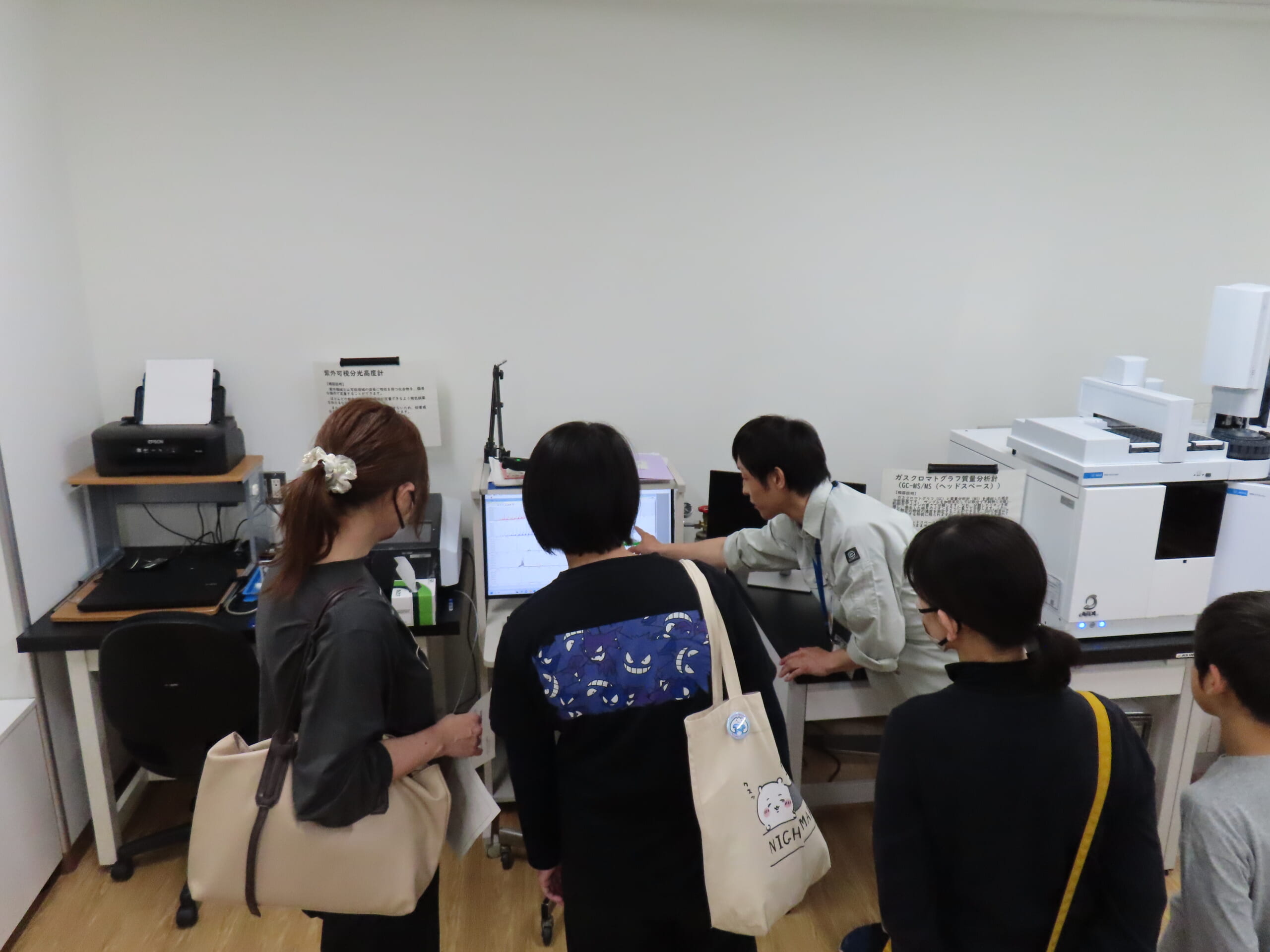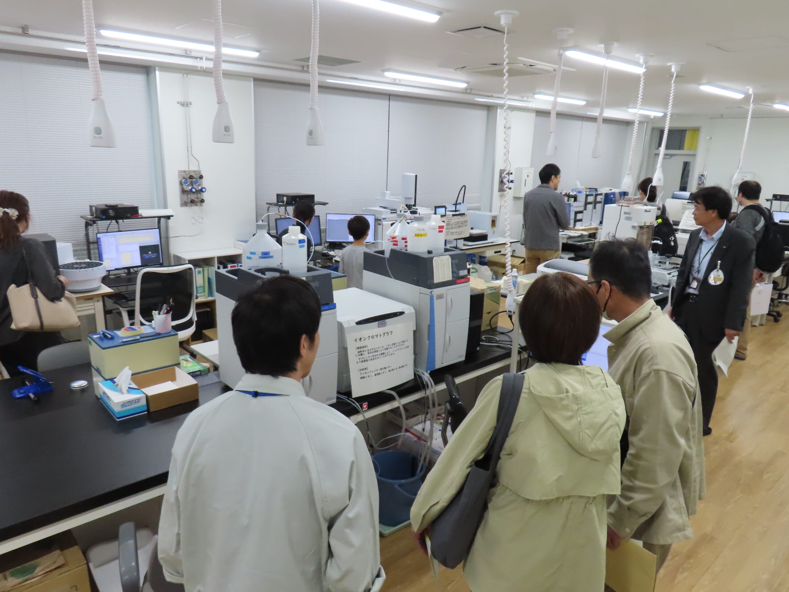 通常は、公開していないセンター2階、3階の試験研究室を見学いただきました。参加者の皆さんは、各部屋で研究員による解説に耳を傾け、たくさんある装置を興見学されていました。こうした機会に、センターの調査研究に関心を持っていただけると幸いです。