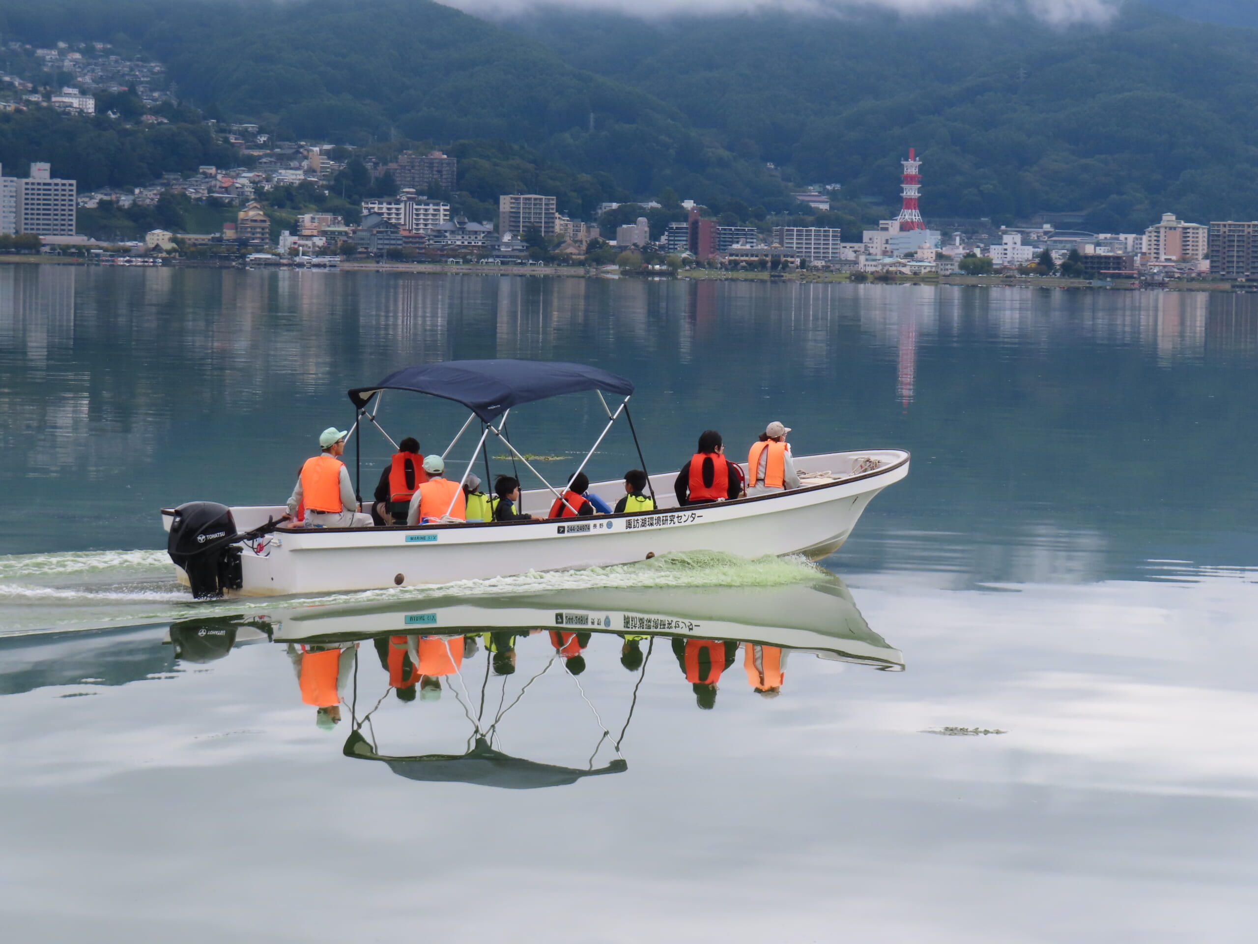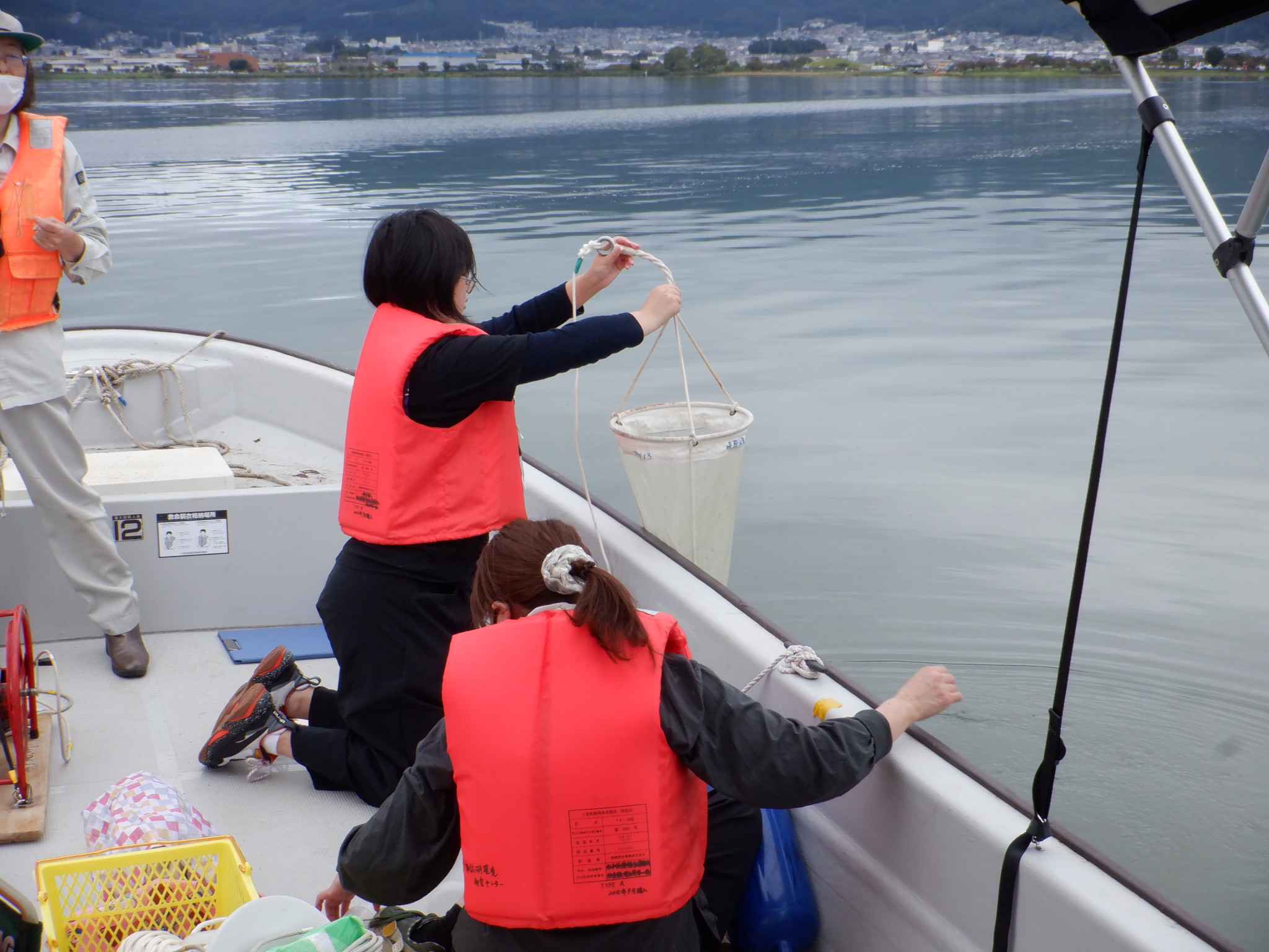 遊覧船とは違い、湖面までの距離が近く諏訪湖を身近に感じていただき、参加いただいた皆さんからは大変好評でした。来年度も調査船に乗って調査する機会を設けたいと思っていますので、ぜひご参加ください。