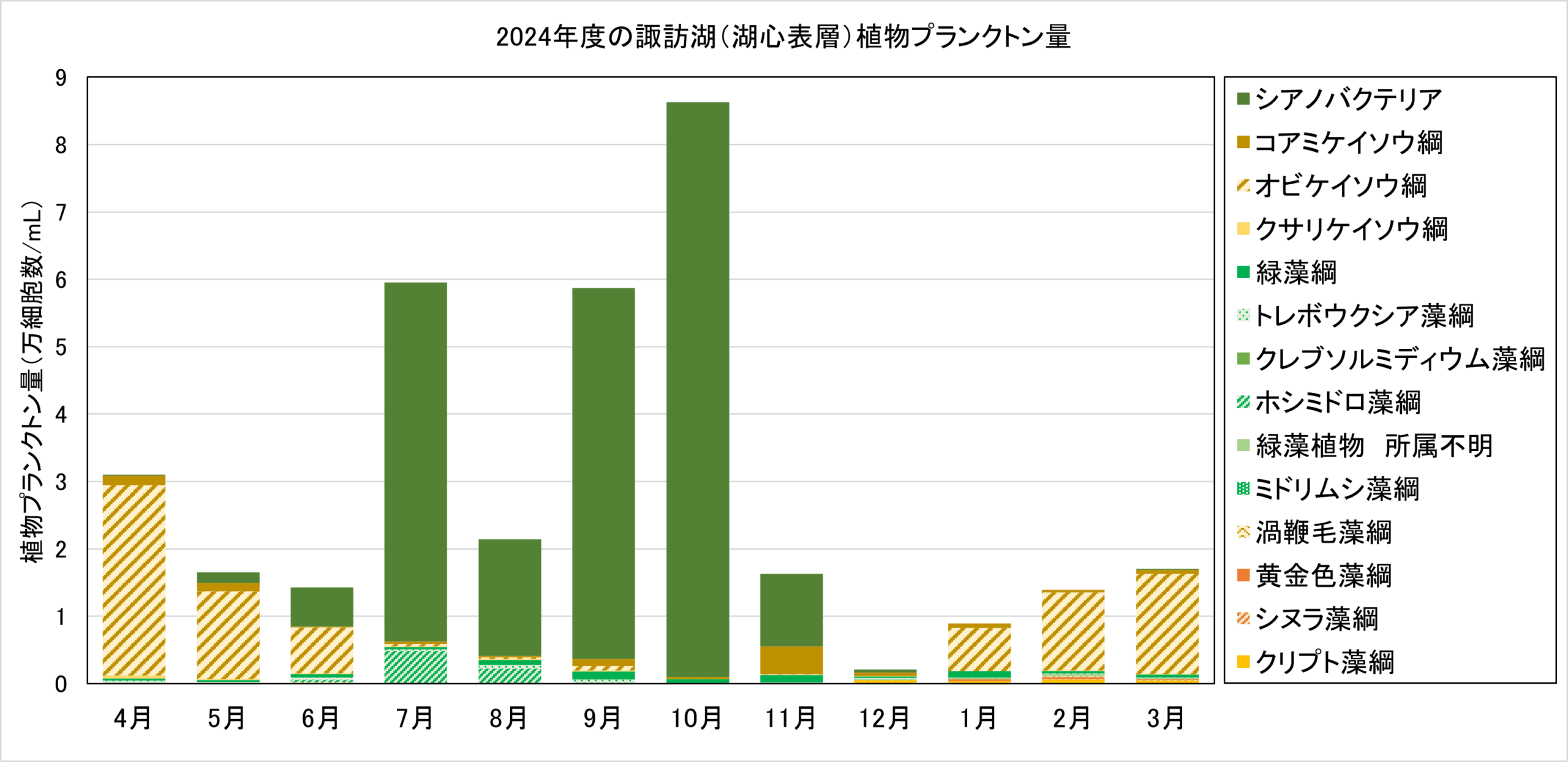 2024年度の調査結果は「2024年度の諏訪湖の植物プランクトン調査結果がまとまりました」をご覧ください。
