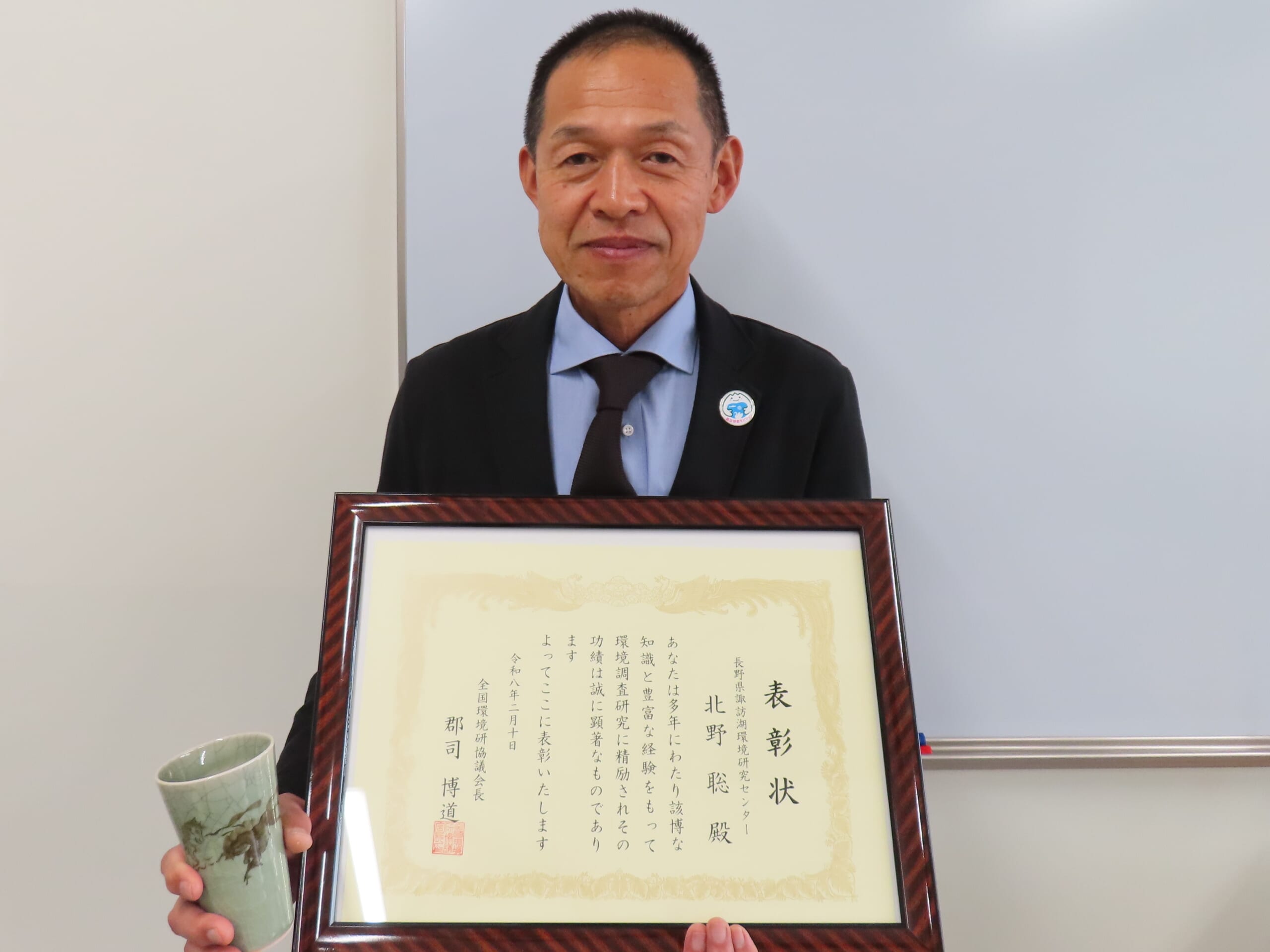 永年にわたる環境保全に関する調査研究の成果が特に認められ、調査研究部・北野聡部長が地方自治体の設置する試験研究機関で組織される全国環境研協議会の会長賞を受賞しました。